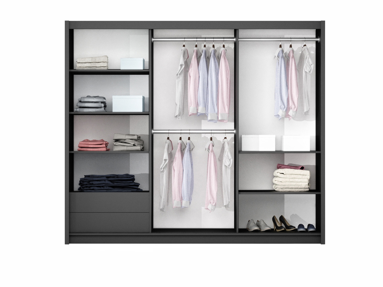 Szerokość aż 250 cm sprawia, że model doskonale sprawdzi się w sypialni, garderobie lub przestronnym salonie.
