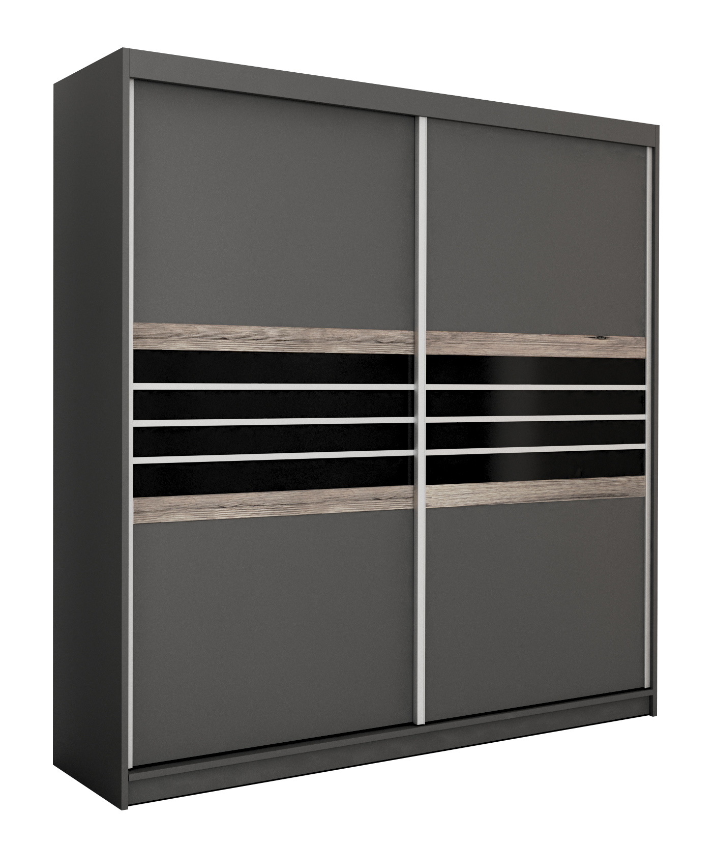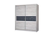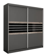 Szukasz eleganckiej szafy przesuwnej, która łączy nowoczesny design z praktycznym wnętrzem? TURYN 203 to model o wyjątkowym charakterze – dekoracyjne pasy z grafitowego szkła, subtelna struktura drewna i minimalistyczna forma sprawiają, że szafa doskonale odnajdzie się zarówno w sypialni, jak i nowoczesnym salonie.