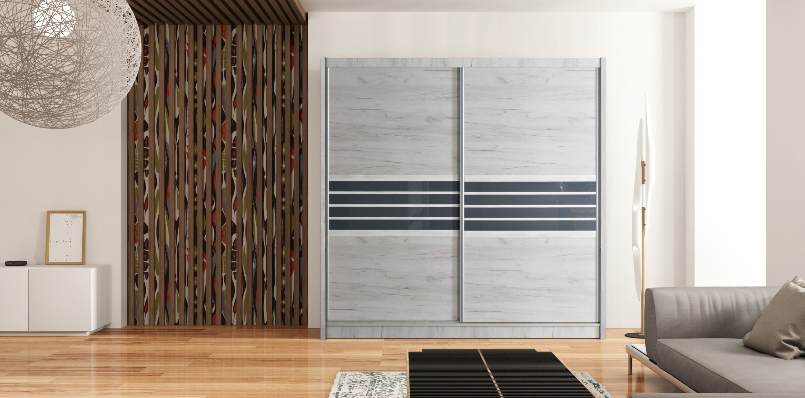 System przesuwny działa płynnie i cicho, a jednocześnie pozwala zaoszczędzić miejsce w pomieszczeniu. To idealne rozwiązanie do sypialni oraz węższych przestrzeni.