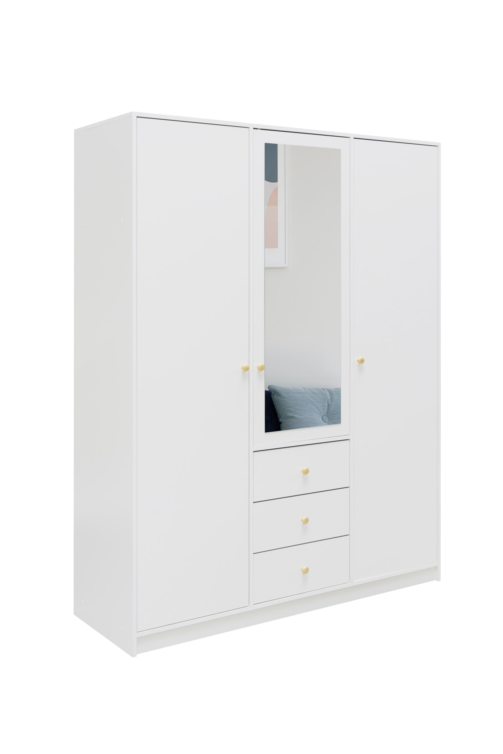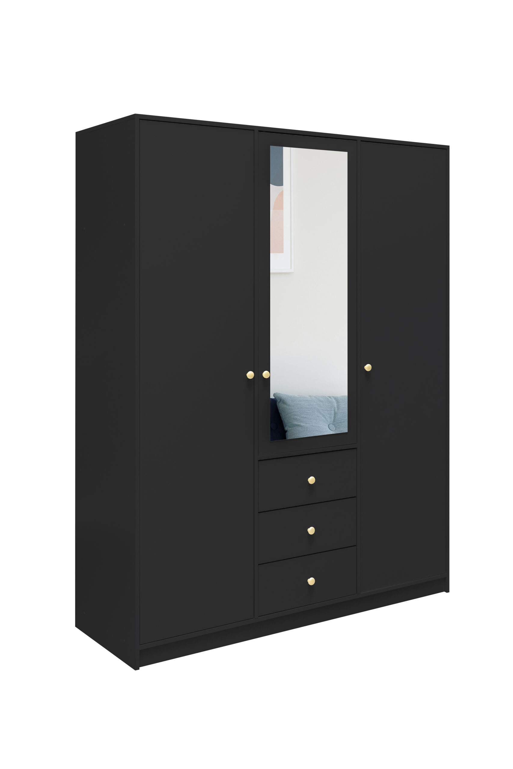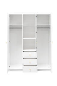 Szafa wyposażona jest w trzy drzwi uchylne, które zapewniają wygodny dostęp do całego wnętrza. Solidne zawiasy gwarantują stabilność konstrukcji oraz płynne i bezproblemowe użytkowanie przez długi czas.