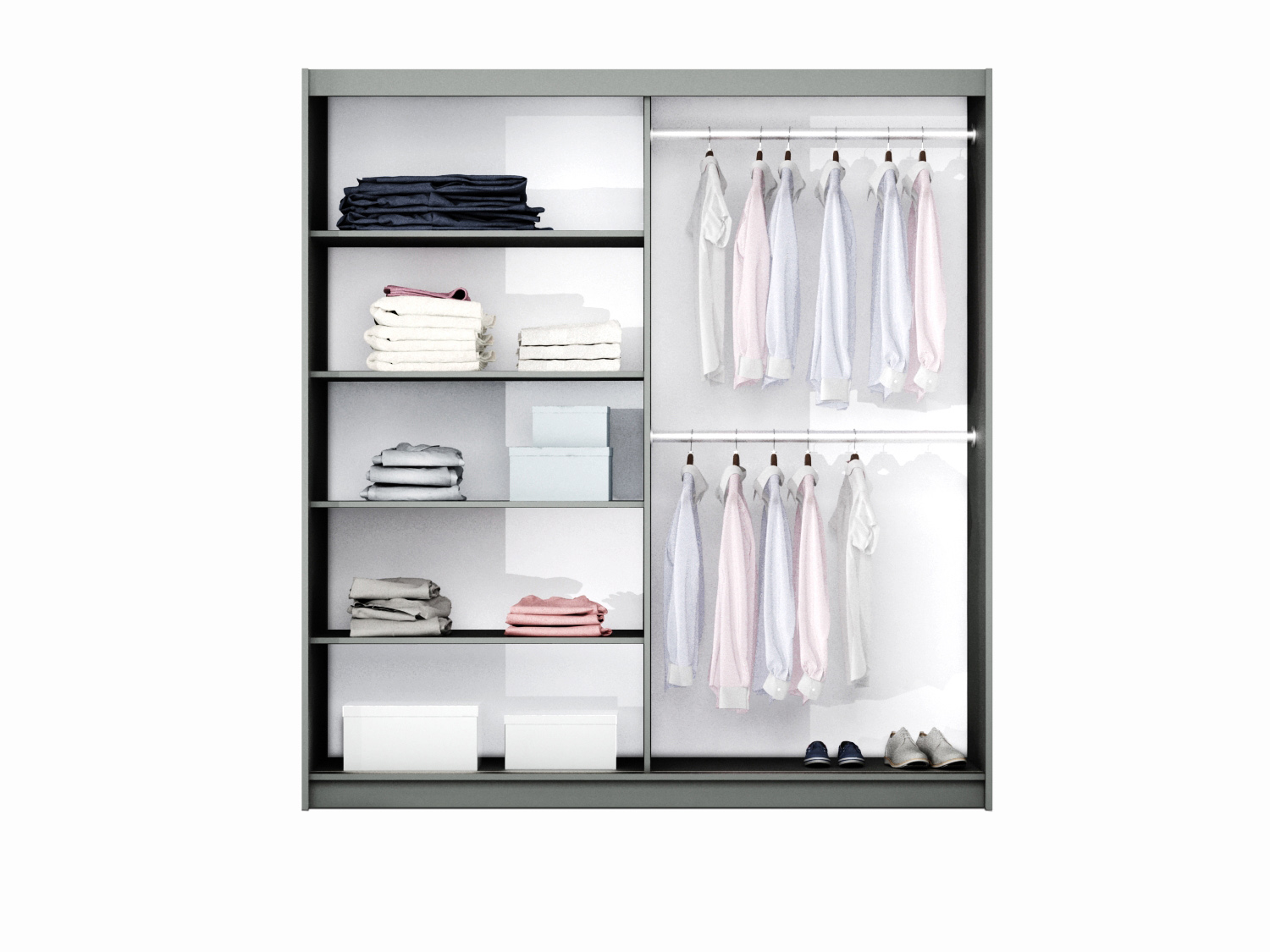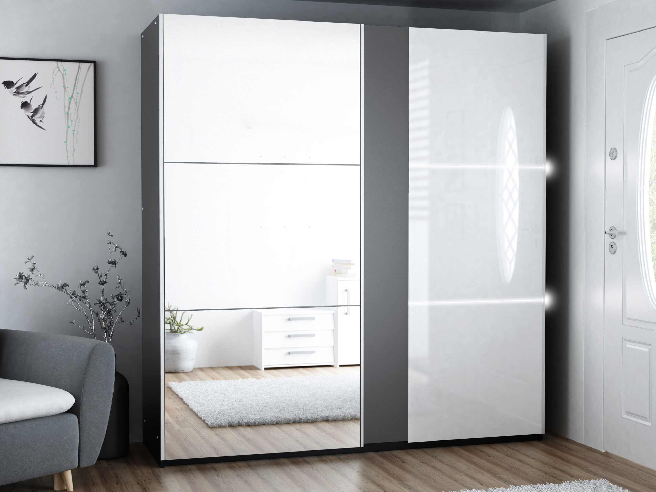 Strona główna Szafy Szafa TUNIS 200 – szafa przesuwna w połysku z lustrem i oświetleniem LED