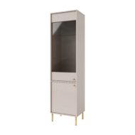 Witryna Livia to połączenie nowoczesnej elegancji z praktycznym designem. Jej przeszklony front nadaje wnętrzu lekkości i pozwala wyeksponować ulubione dekoracje, zastawę czy książki, jednocześnie chroniąc je przed kurzem. Smukła forma witryny sprawia, że doskonale sprawdzi się zarówno w salonie, jadalni, jak i domowym biurze.