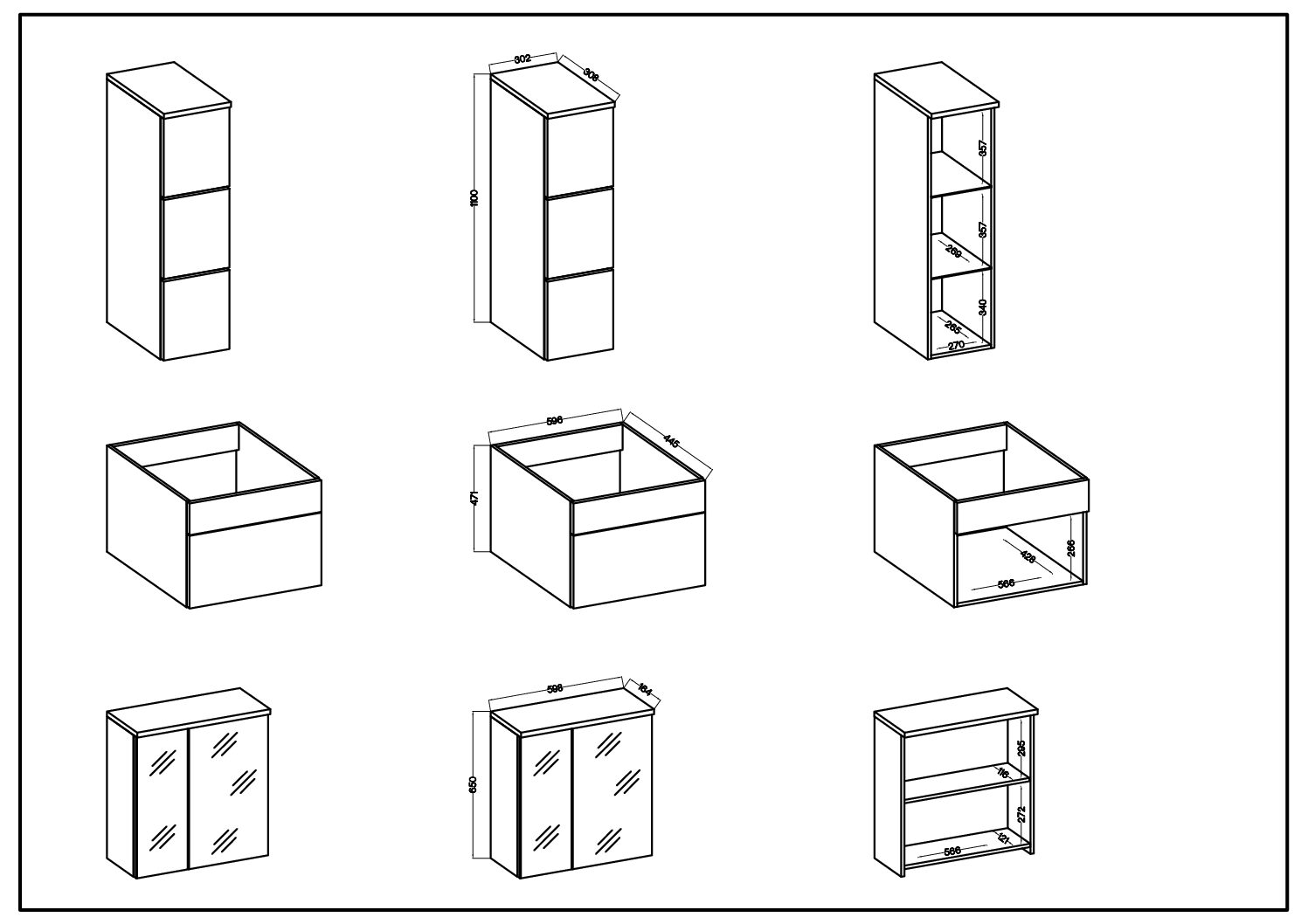 Wymiary poszczególnych elementów zestawu dostępne są na zdjęciu szkicowym.
